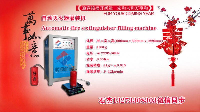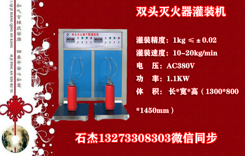 干粉灭火器充装机由振动过滤部分和除尘部分构成,其振动器下端有敲击杆,与其下端的振动组相配合,振动组下端有过滤挡板组,均设在料筒上部,这种干粉灭火器充装机充装范围广、充装速度快、噪音低、操作简单、维修方便、无粉尘污染、可连续充装不堵塞。